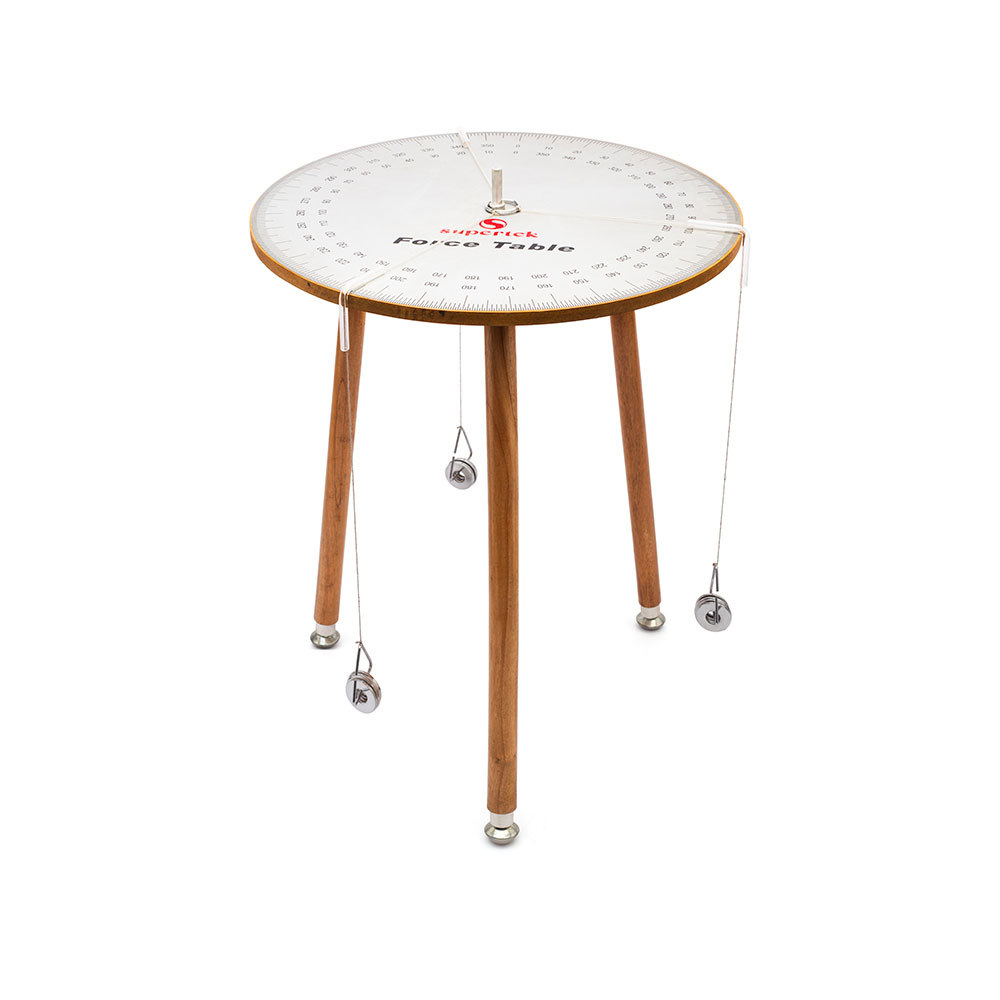 Wooden Table of 40 cm diameter having angular resolution to the nearest 0.5 Degree, supported on three adjustable legs. Each line is passed through a quarter bend of glass tubing, Equipped with four glass quarter bends, four weight hangers, 20 washers, one string set and instruction manual.