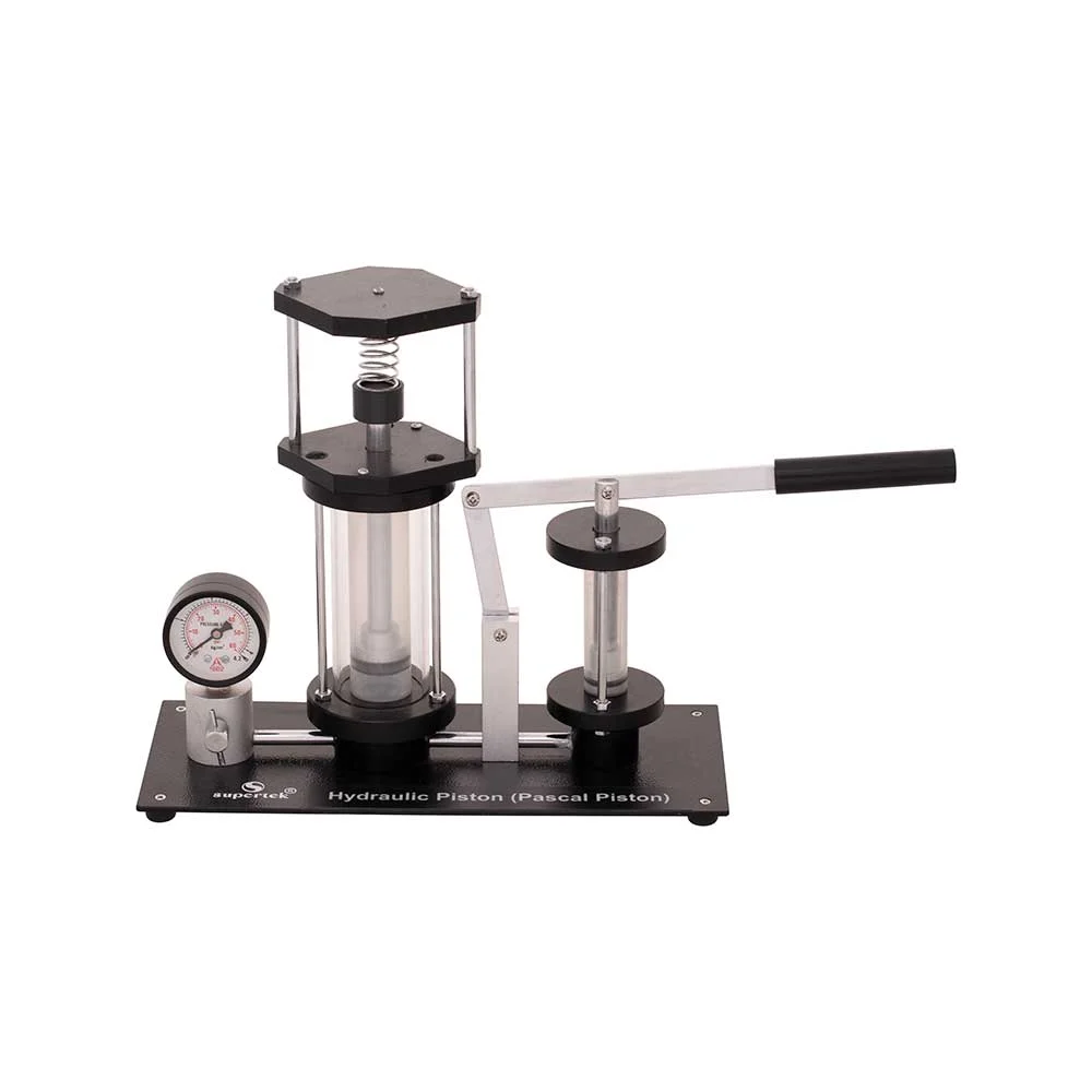 A simple and effective tool for illustrating pressure transmission in fluids. Two transparent cylinders of different sizes, connected by a brass tube, show Pascal’s Law in action. Hands-on learning in classrooms.