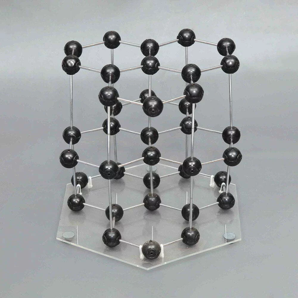 Large crystal models to introduce crystal lattices and unit cells to students. Mounted permanently onto a clear acrylic base to minimize the possibility of lost parts.