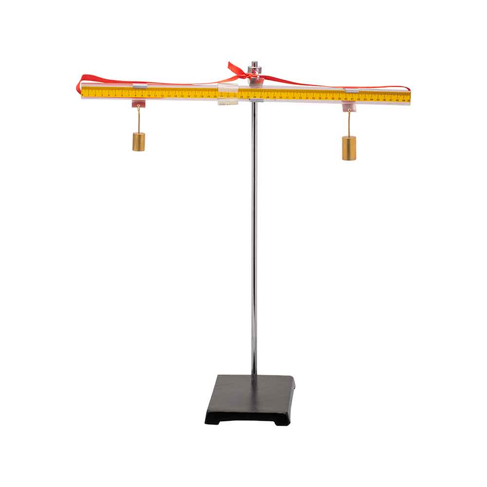 To demonstrate levers, movements and the principles of mass measurement. Comprises a ½ meter stick, a clamp, a stand, two weight hangers and masses.
