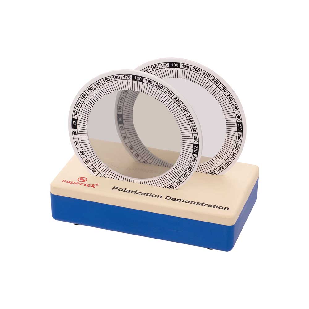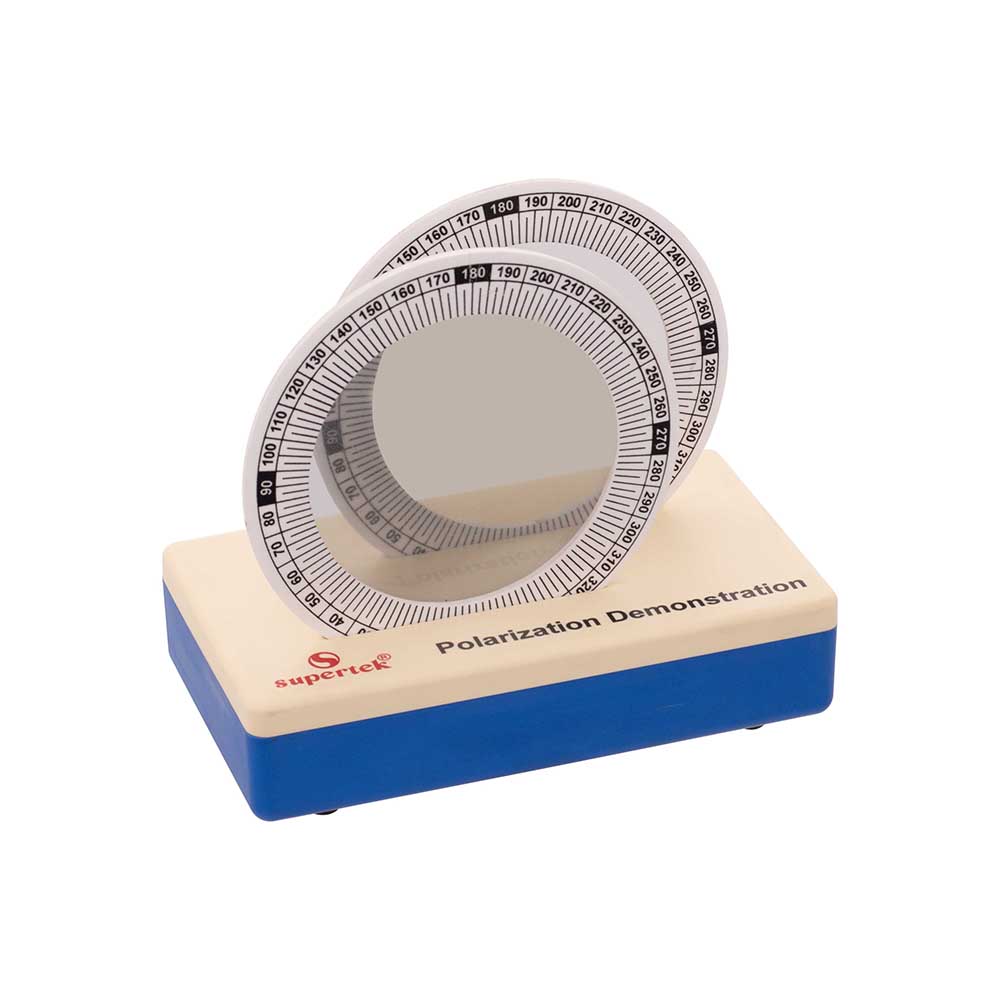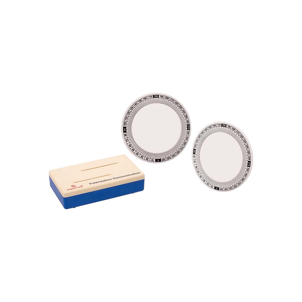 Demonstrate stress patterns in solids with this new and valuable equipment. Two polarising filters, mounted on a graduated frame are placed on a plastic base. Clear acrylic pieces of different shapes are introduced between the filters; when pressure is applied to the solids the resulting stress patterns are observed. An important method of demonstrating polarisation and stress. Includes instructions.