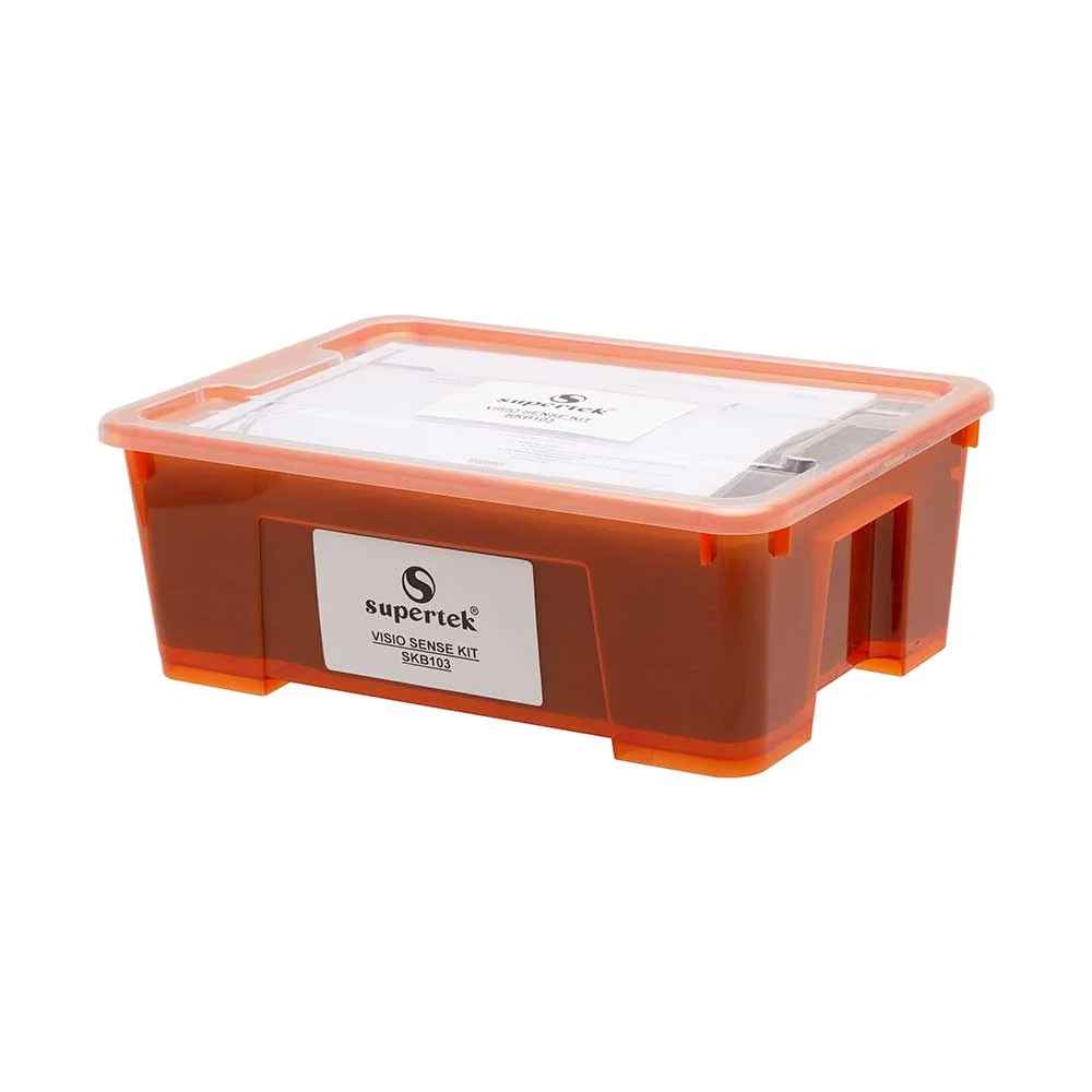 This kit is securely stored in a transparent plastic drawer with a fitted lid for easy organization and protection.