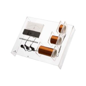 A spherical conductor on insulating stand with two hollow hemispheres, each with insulated handle, to show that electrostatic charge resides on outer surface.